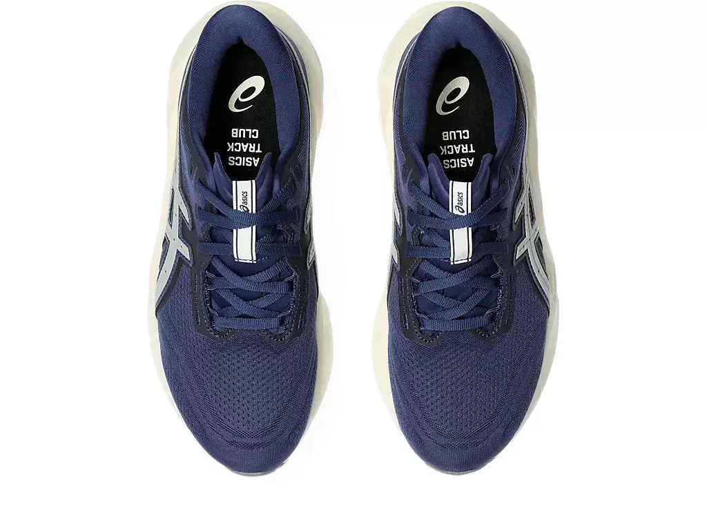 Geometria podeszwy środkowej i zewnętrznej butów do biegania NOVABLAST® 5 ASICS® TRACK CLUB zapewnia energiczny bieg. Kolorystyka inspirowana jest dresami i butami do biegania z lat 80.