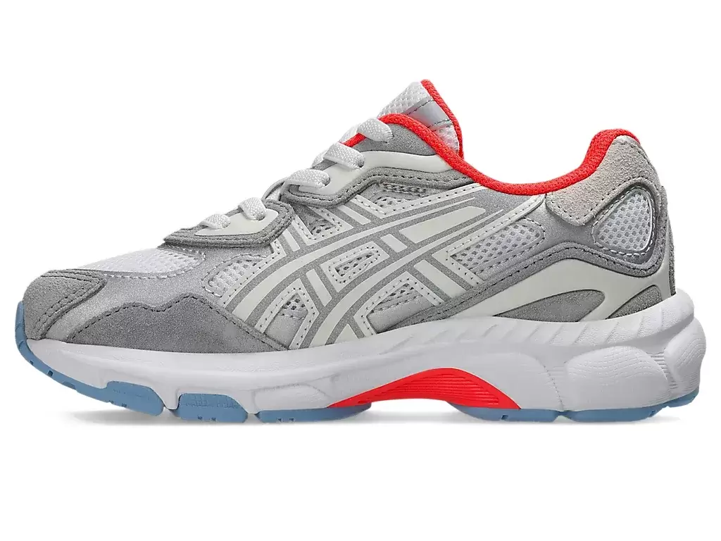 Konstrukcja narzędzi również została opracowana w oparciu o spostrzeżenia ISS i opracowana z myślą o większej elastyczności w przedniej części stopy oraz stabilności w śródstopiu, aby wspierać rosnące stopy dzieci. Projekt inspirowany jest archiwalnymi modelami ASICS® i łączy płynne linie i faliste krawędzie z lat 2000 i 2010.