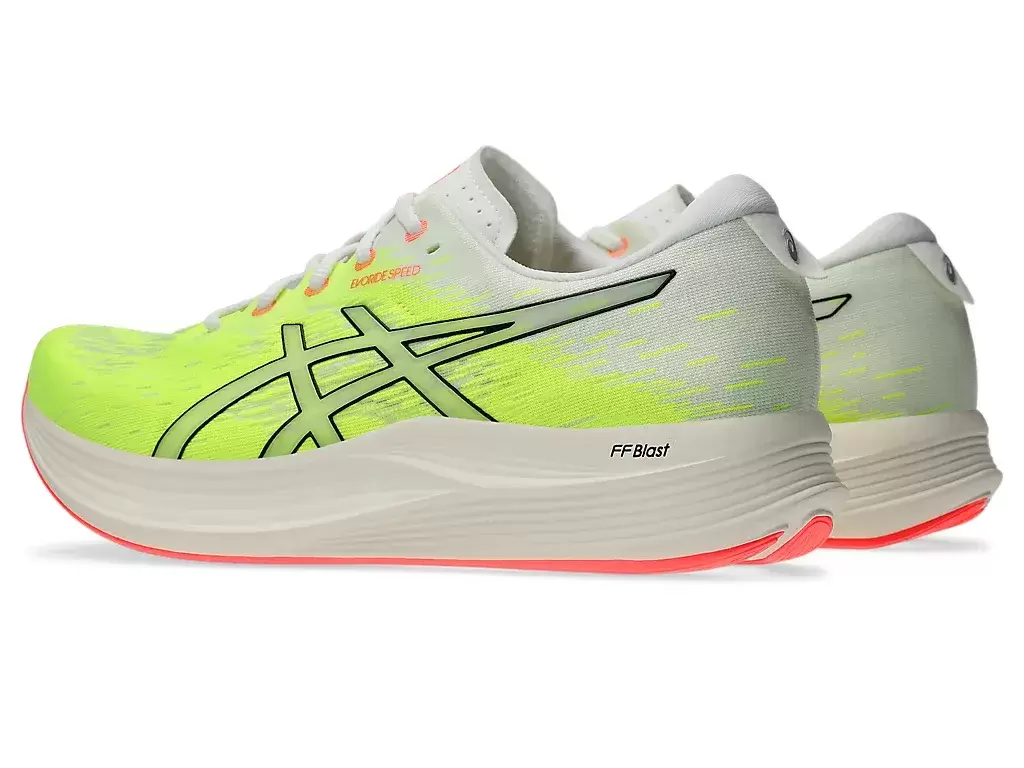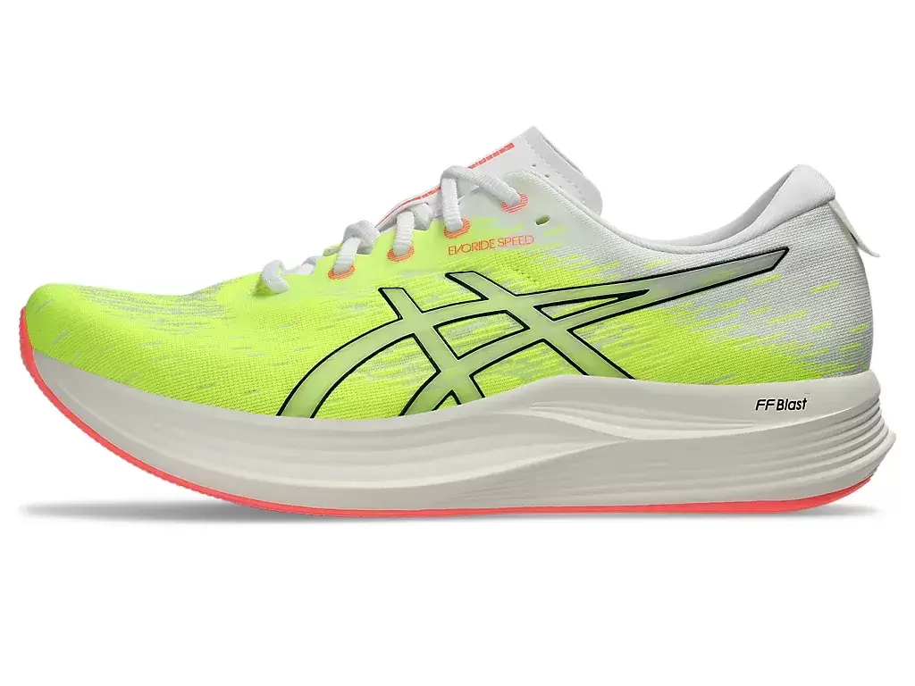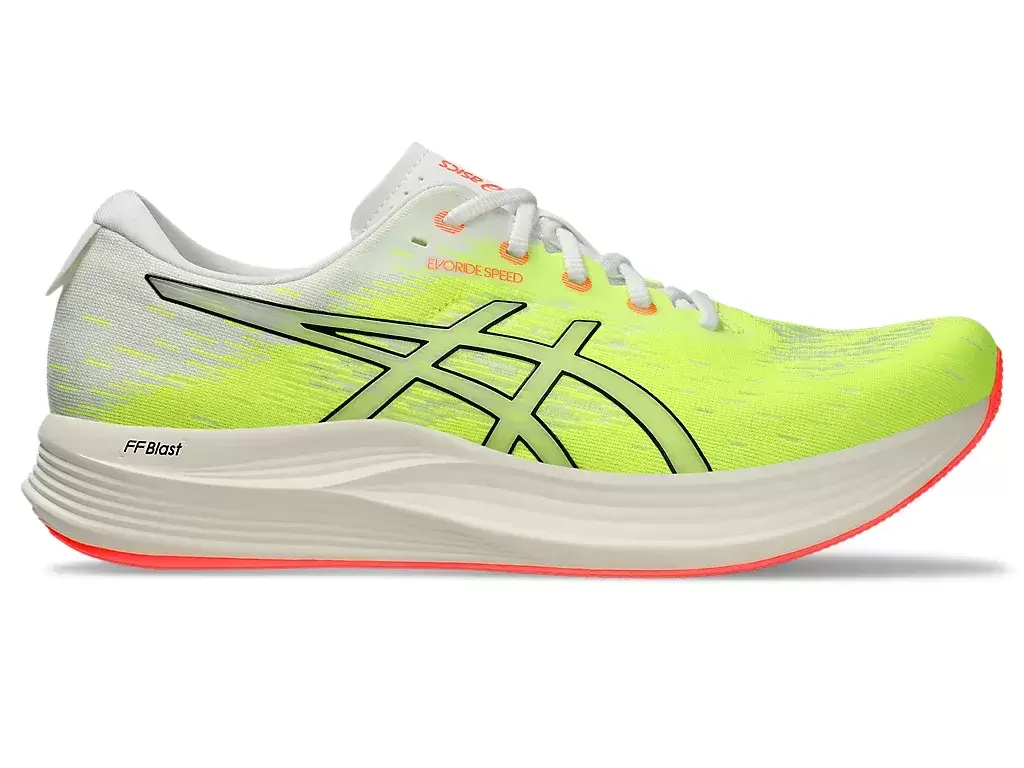 Buty sportowe EVORIDE™ SPEED 2 to lekkie buty, które zostały zaprojektowane tak, aby zapewniać większą oszczędność energii niż poprzednia wersja. Udoskonalenia tego buta skupiają się na szybkości, komforcie i dopasowaniu. Amortyzacja FF BLAST™ pomaga zapewnić bardziej miękkie lądowania i responsywne odbicie. Jednocześnie funkcja 3D SPACE CONSTRUCTION™ pomaga zmniejszyć wagę, jednocześnie poprawiając odkształcenia. Wreszcie, gumowa podeszwa zewnętrzna AHAR™ zapewnia lepszą trwałość na różnych nawierzchniach.