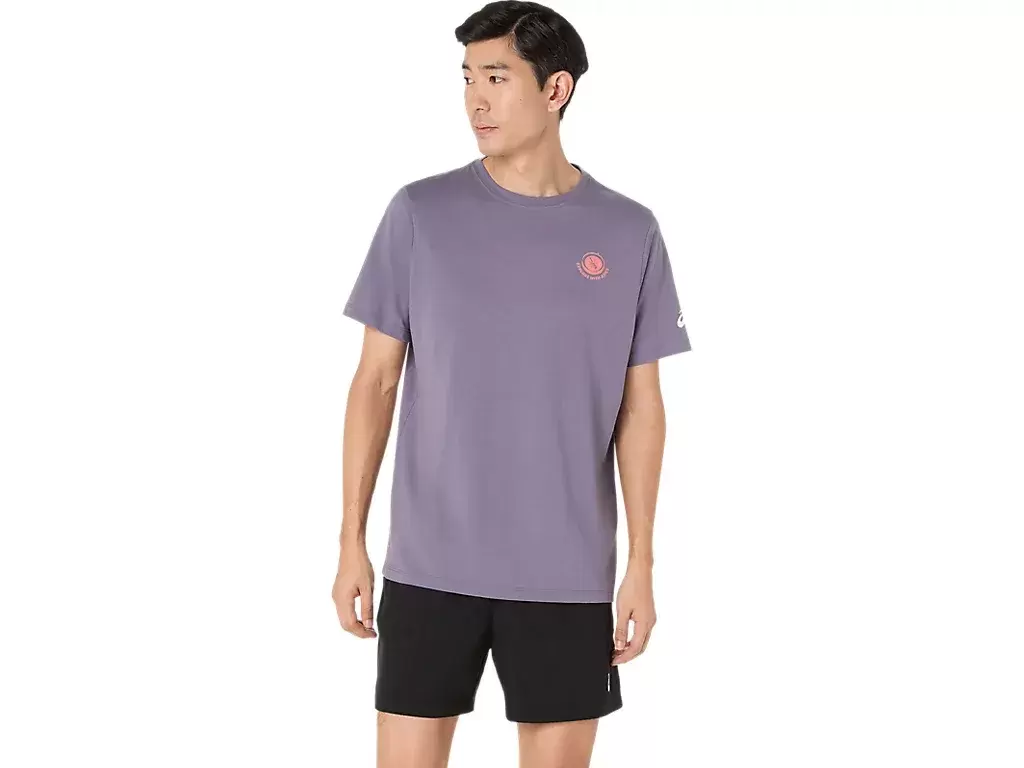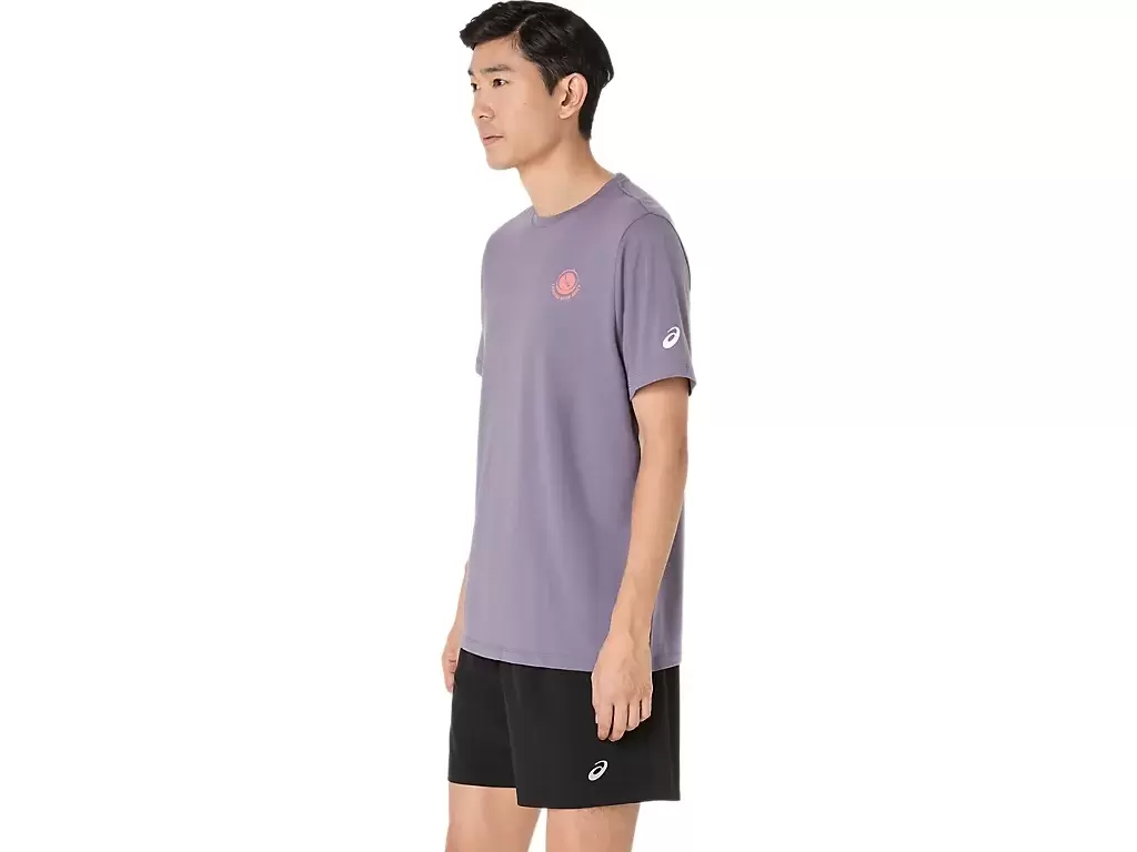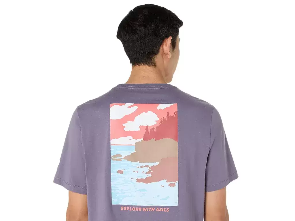 Ta wygodna dzianinowa koszulka z krótkim rękawem inspirowana jest malowniczymi morskimi krajobrazami. Grafika na plecach przedstawia napis „ODKRYWAJ Z ASICS” i uzupełnia nadmorski motyw otoczony drzewami.