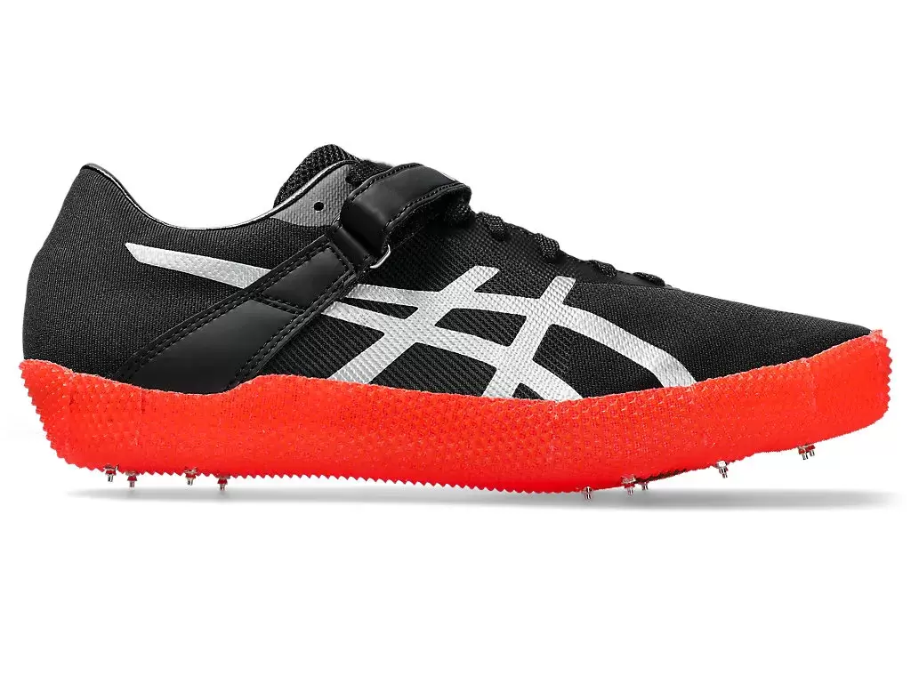 Buty HIGH JUMP PRO™ 3 (L) przeznaczone dla średniozaawansowanych i elitarnych zawodników, którzy startują lewą nogą, wyposażone są w pojedynczy pasek na rzep i cholewkę Motion Wrap, aby zapewnić dynamiczne dopasowanie.