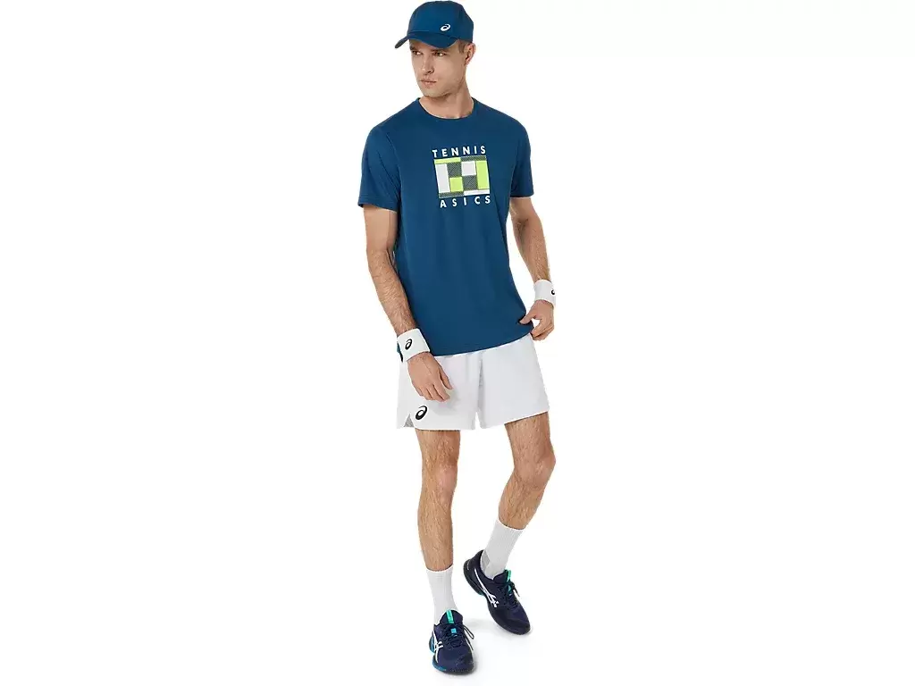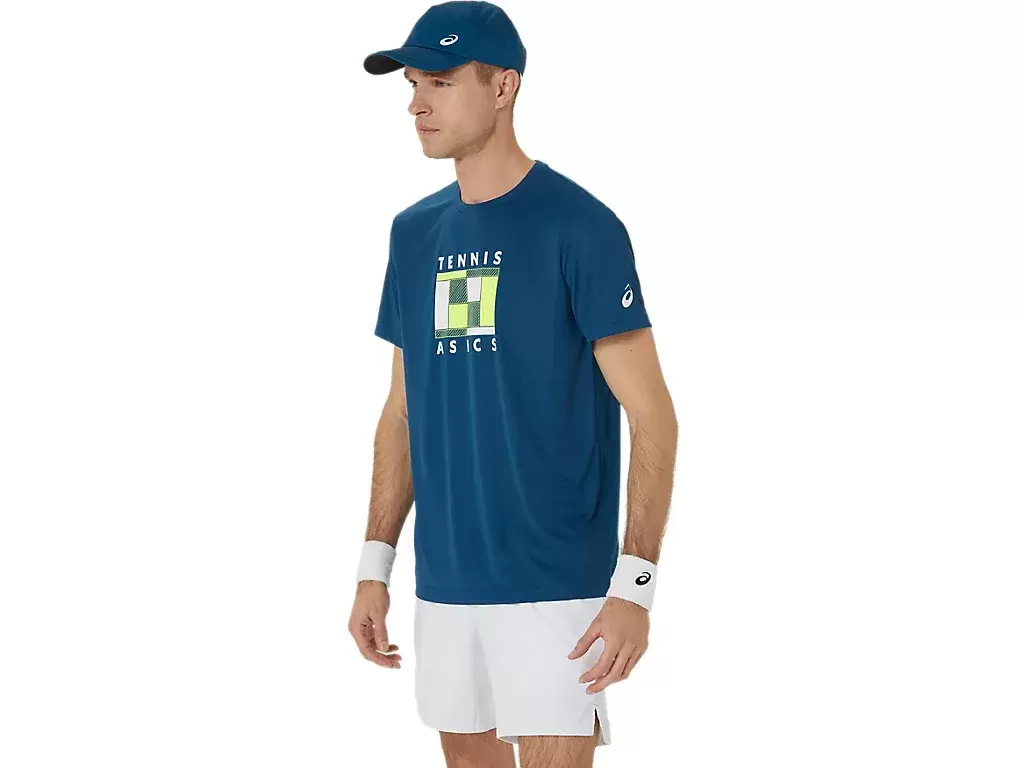 Ta koszulka GS GRAPHIC TEE ma grafikę inspirowaną kortem tenisowym, która jest ponadczasowa i nadaje się na różne mecze i treningi. Ponadto miękkie i oddychające tkaniny sprawiają, że ta koszulka jest wygodna i stanowi niezbędny element codziennej gry w dniu meczu. Przynajmniej 50% głównego materiału odzieży jest wykonane z materiałów pochodzących z recyklingu, aby zmniejszyć ilość odpadów i emisji dwutlenku węgla.
